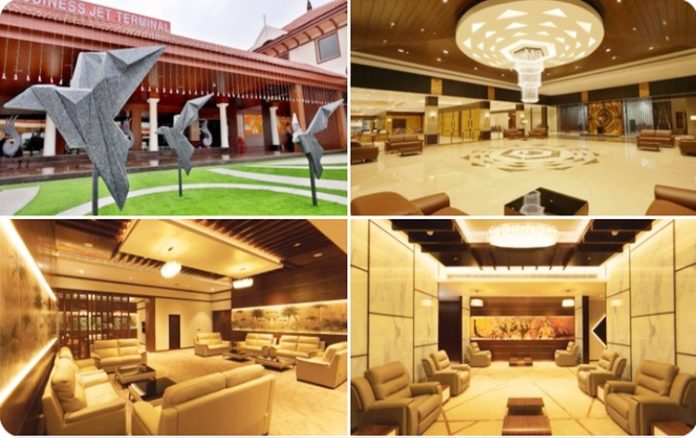 The business jet terminal inaugurated was built at a cost of 40 crore rupees by renovating the old domestic terminal. It covers an area of 40,000 sq ft with comfortable lounges, customs and immigration counters, a business centre and other modern facilities.