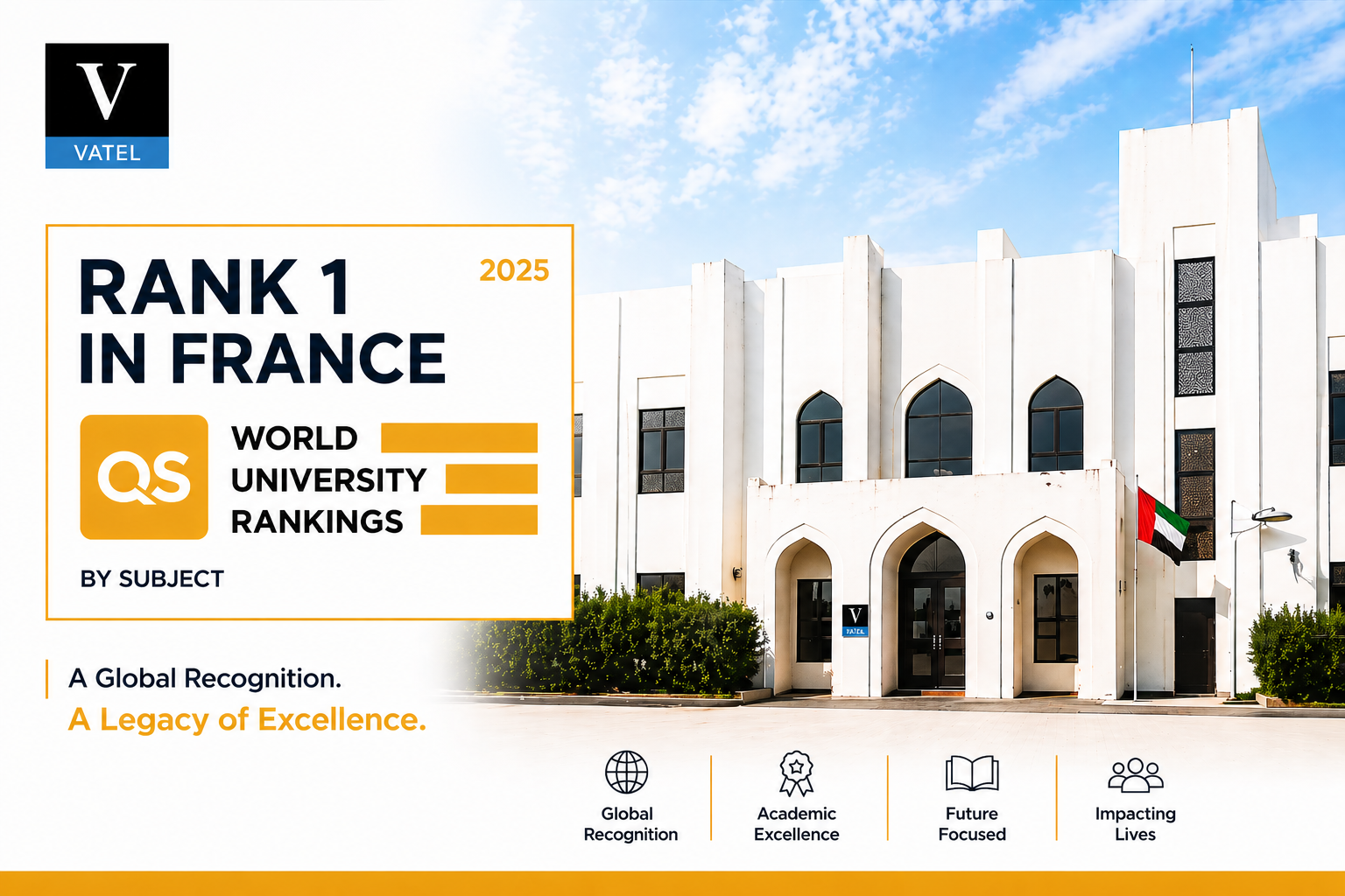 As per the prestigious QS World University Rankings by Subject (Hospitality & Leisure Management), Vatel has maintained its position as the No.1 hospitality school in France while also strengthening its global standing, ranking among the top institutions worldwide. The school is placed around 11th globally, reinforcing its international reputation for excellence in hospitality education.